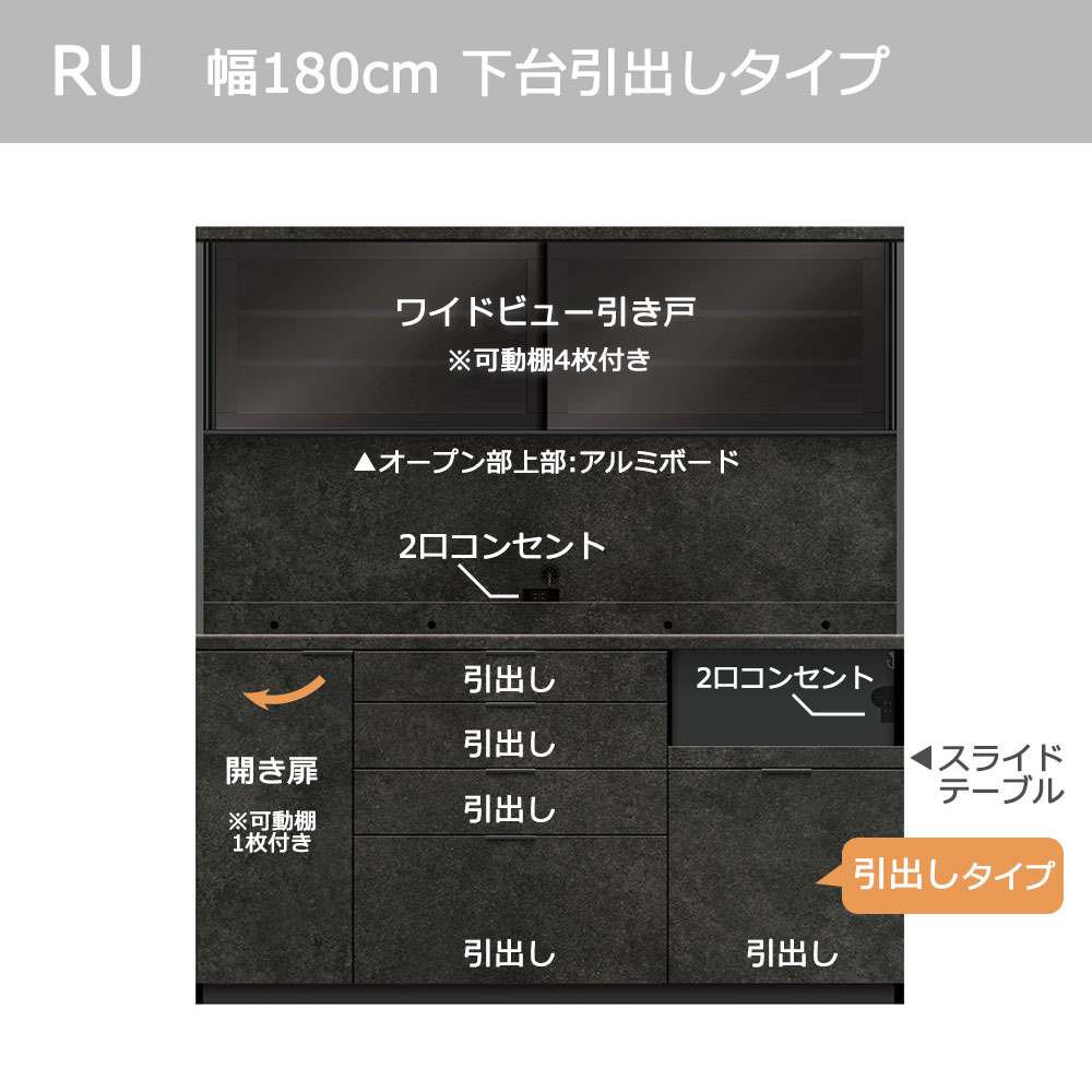 必要な機能と選べるテイストが魅力のオープンボード「RU-S1800R・1800R」下台引出しタイプ