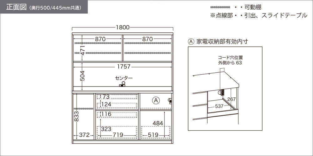 | 奥行445mm | 幅1800x奥行445x高さ1975 |