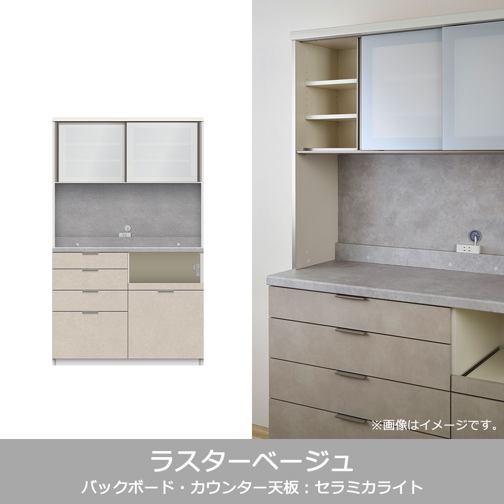 キッチン収納に必要な機能がまとまったハイカウンタータイプの食器棚です。4段引出しに加え、家電収納下も引出しタイプで、十分な収納力を備えています。※画像はイメージです。