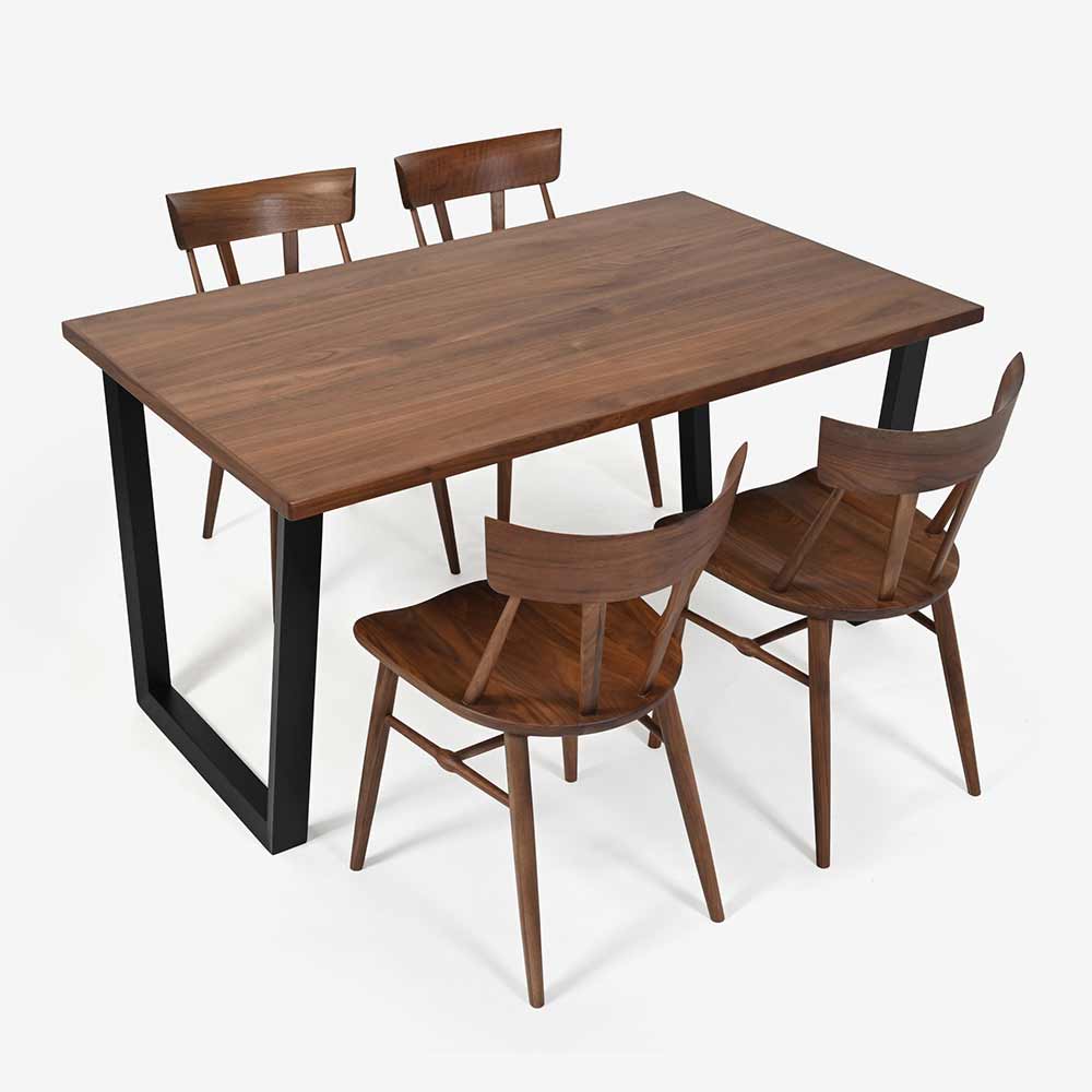 ウォールナット材の天板とブラック色(ラバーウッド材)の脚の組合せがモダンなダイニングテーブルです。お部屋に合わせて3サイズから選べます。