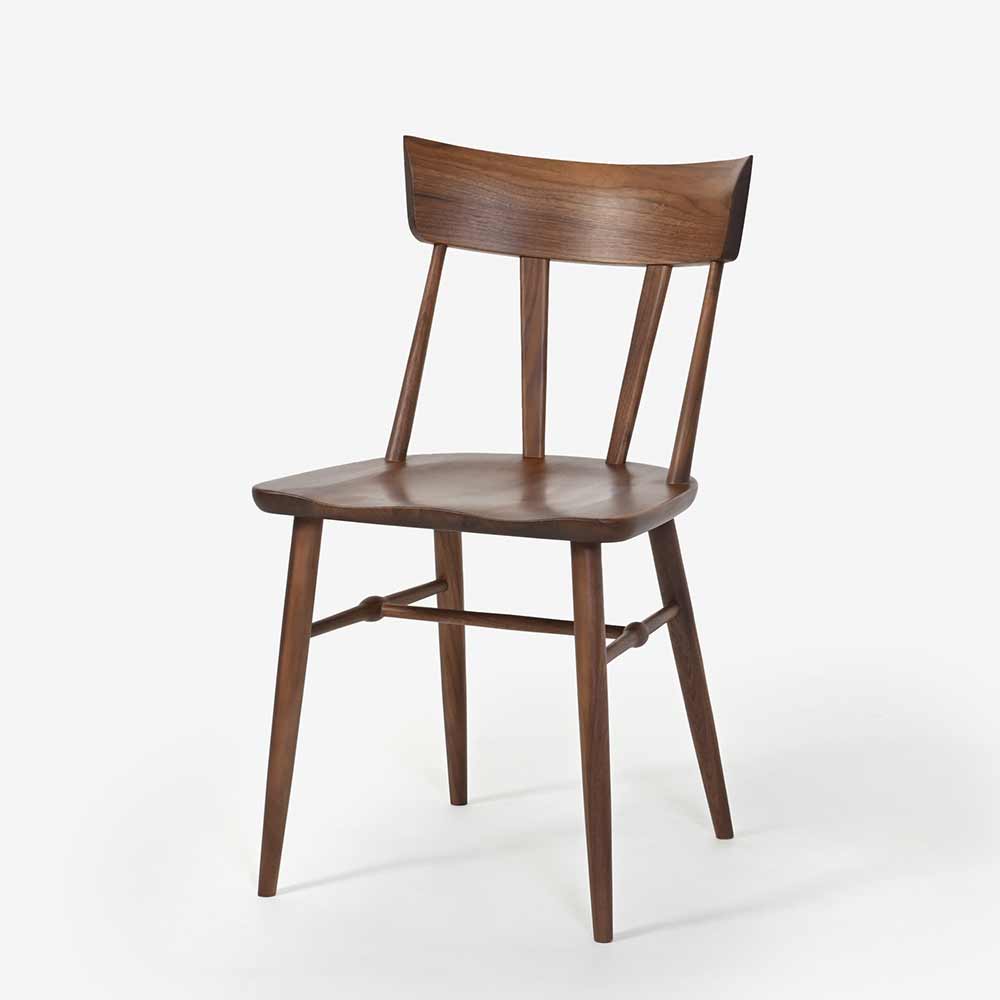 脚部のこぶのようなデザインもアクセントに。ウィンザーチェアを彷彿させるデザインですが、ウォールナット材の木目と深い色味がモダンな空間にもマッチします。