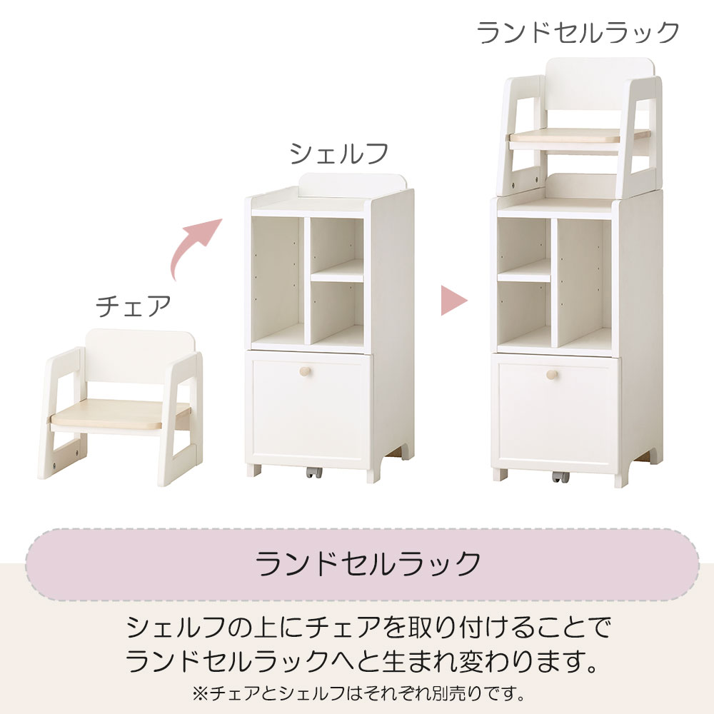 使える期間が短いキッズチェアですが、成長してからは別売りシェルフの上に連結してランドセルラックとして使い続けることができます。※画像はイメージです。チェア以外は別売りです。
