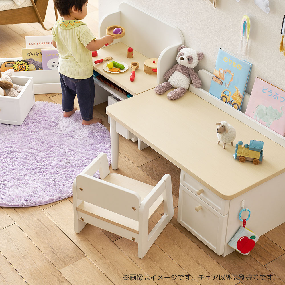 幼児期はキッズチェアとして、シリーズのキッズデスクに合わせて使えます。※画像はイメージです。チェア以外は別売りです。