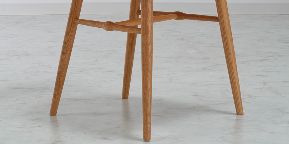 脚部のこぶのようなデザインもアクセントに。ウィンザーチェアを彷彿させるデザインです。