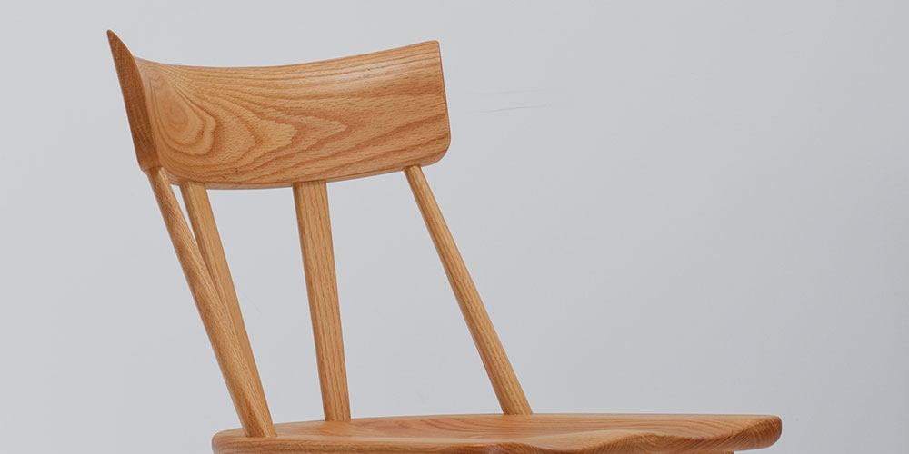 背もたれの笠木は無垢材の曲木を使用し、背当たりがやさしい曲線となっています。