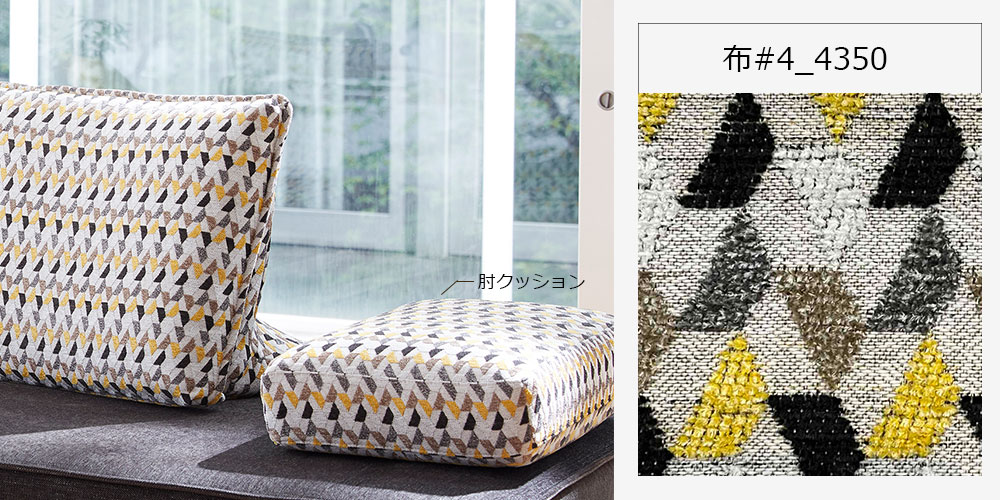リビングの中央に置いても圧迫感がなく、開放的な空間を演出するアイランド型のソファシリーズ「ファビオEX」の肘クッションです。幾何学模様の生地(#4_4350)とソファと同色(#4_4282)の2色からお選びいただけます。※肘クッション以外は別売りです。