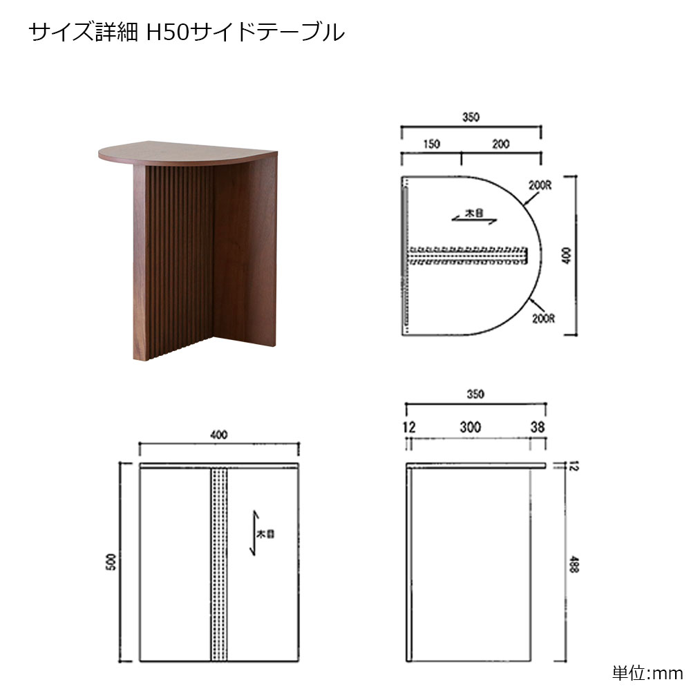 | H50サイドテーブル | 幅400x奥行350x高さ500 |