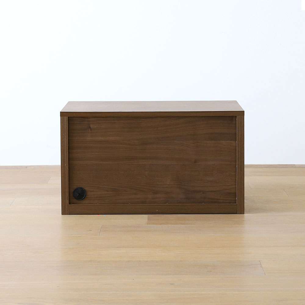 前板の表面にはウォールナット材突板のウッドリブを使用しており、深みのある美しい色合いを活かしたシャープな仕上がりに。デザイン性の高い、豊かな表情のある空間を演出します。幅75cmとコンパクトながら、仕切りのない広い収納スペースを備えています。シリーズで並べたり、お部屋のサイズに合わせたレイアウトができます。※天然木のため、木目や色に個体差がございます。