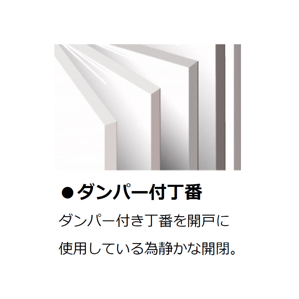 ●ダンパー付丁番:ダンパー付丁番を開き戸に使用しているため静かな開閉。