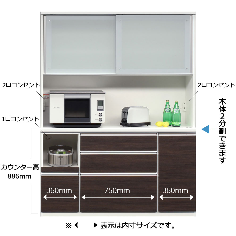 オーブンレンジや炊飯器などの外部に蒸気や熱を放出する物を収納する場合は、ご使用になる家電製品の取り扱い説明書に従ってください。