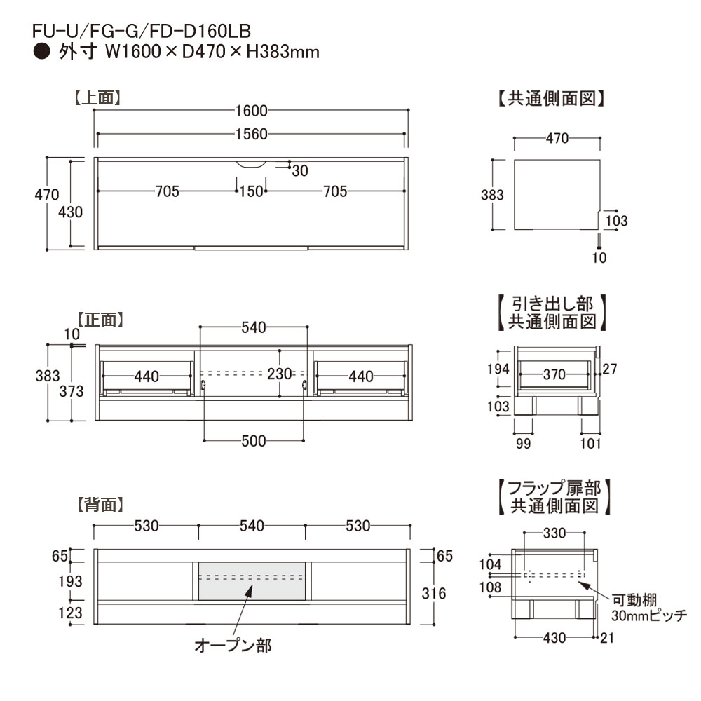 AYANO(綾野製作所)テレビボード「フォーカル」幅160cm 全3色