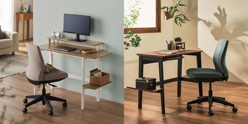 ワークスペース空間の変化に対応し、デスク幅は3段階に調整可能、補助天板の取付け箇所次第で多様なデスクスタイルを実現するエクステンションデスクです。奥行きは45cmとコンパクトなので、リビングでの作業デスクとしてなど、フレキシブルに使えます。
