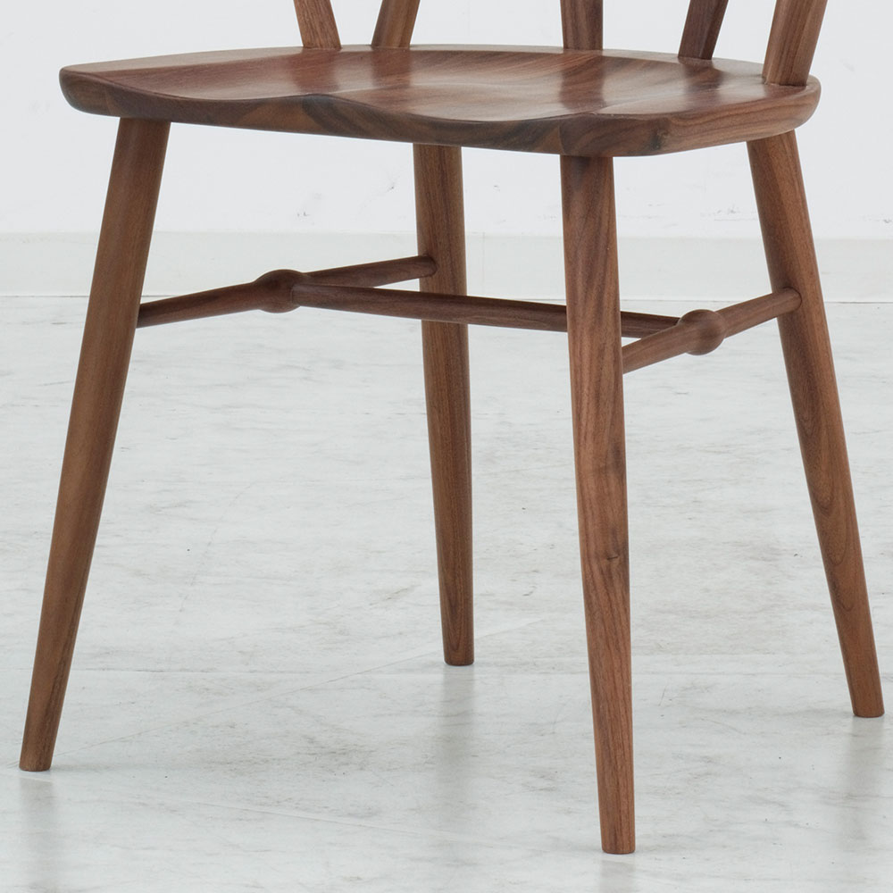 脚部のこぶのようなデザインもアクセントに。ウィンザーチェアを彷彿させるデザインです。