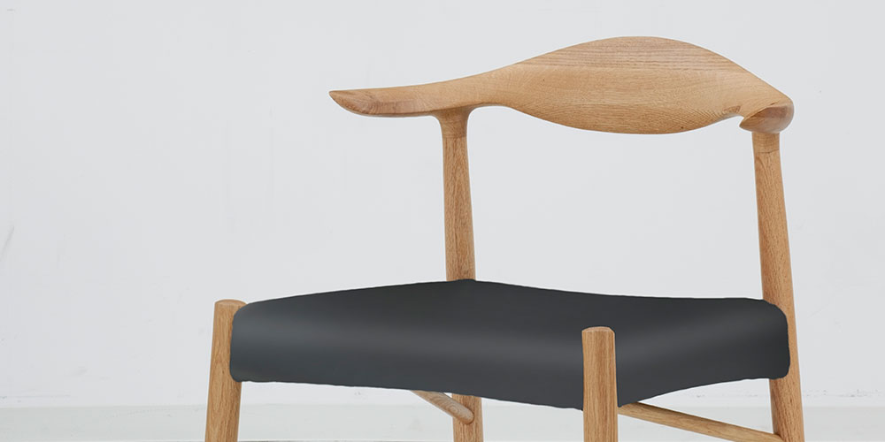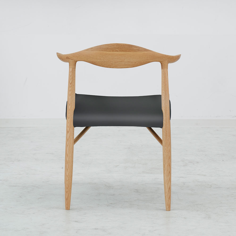 背当たり部(笠木部)は背にぴったり合うようゆるやかなカーブをつけて削り出しています。細部までなめらかに仕上げられた背もたれの先端は、自然に肘を置いてくつろぐことができる絶妙な長さになっています。※画像はウォールナット材(WAL)を使用したイメージです。