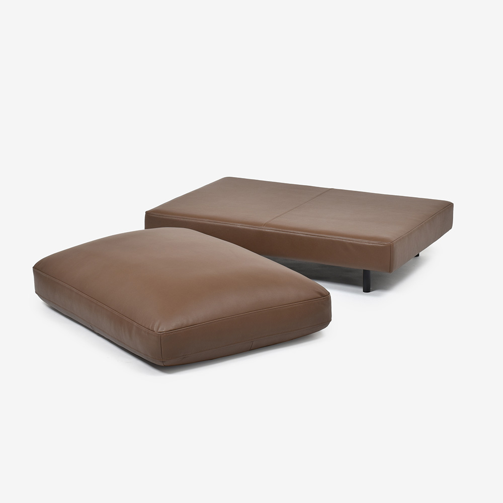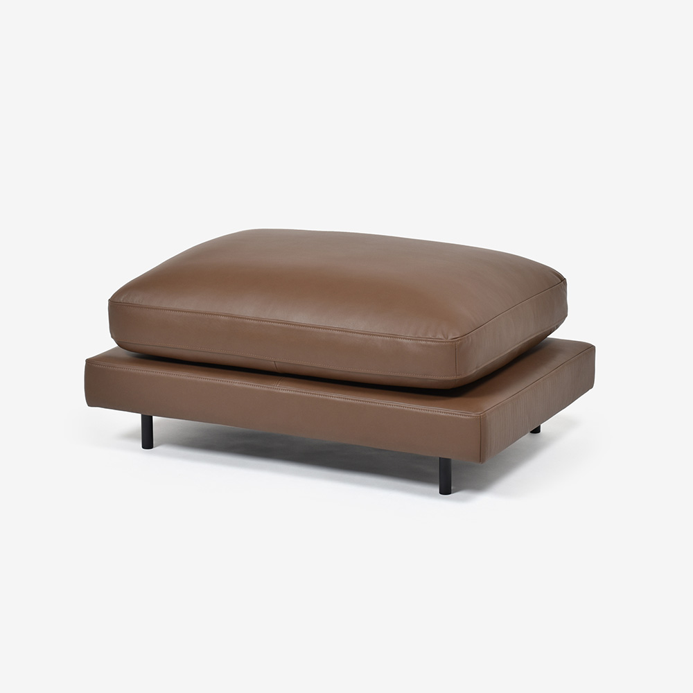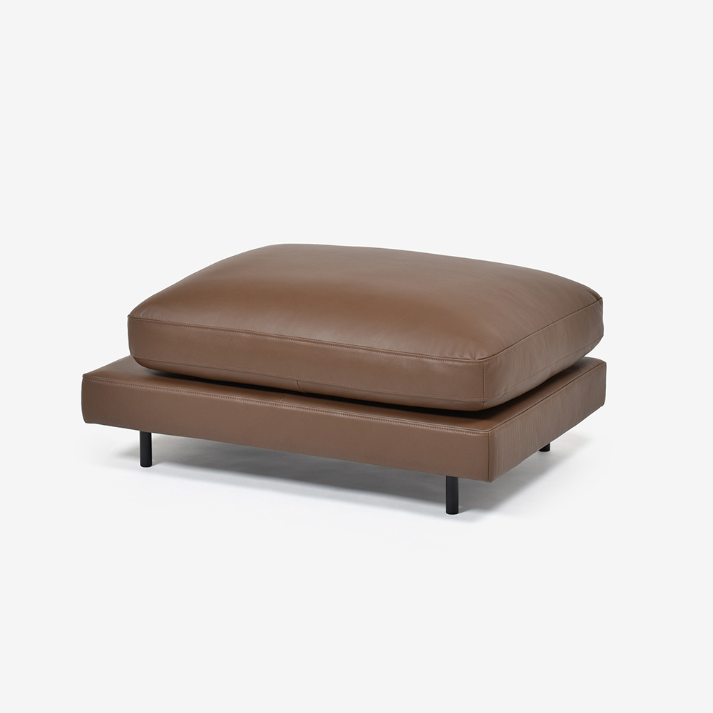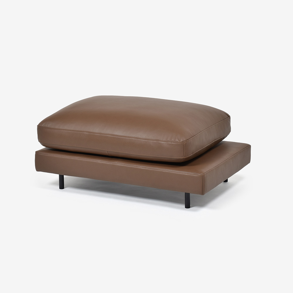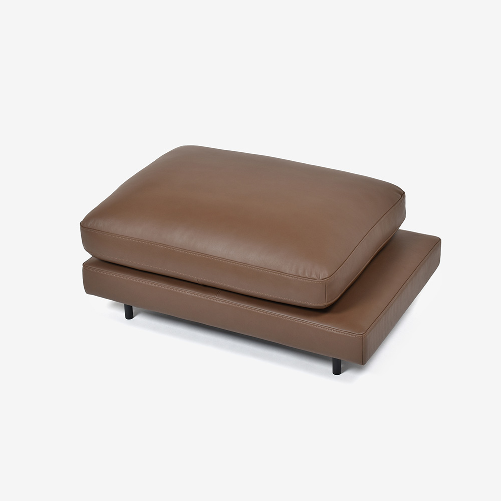 オットマンの座クッションは、SINAシリーズソファ同様のラウンジデラックス仕様。座面の内部は硬さと形の異なる高密度ウレタンフォームが重ねられている多層構造となっており、上部にはビスコースフォーム20%とマイクロファイバー繊維80%の層が使用されています。長時間座っても疲れにくい掛け心地を実現しています。