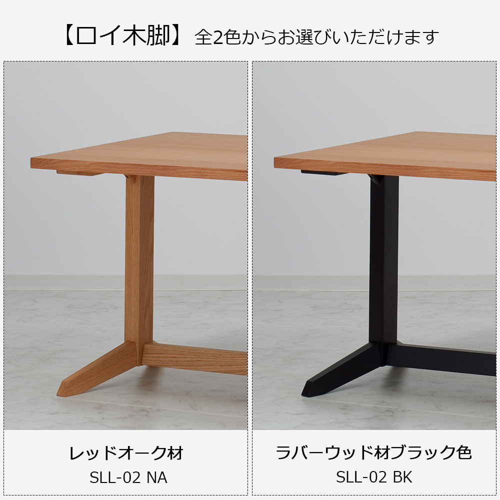 天板と脚をナチュラルに揃えられる「レッドオーク材(NA)」と、ブラックで脚元を引き締めモダンなコントラストを楽しめる「ラバーウッド材ブラック色(BK)」からお選びいただけます。※画像は脚パーツイメージです。