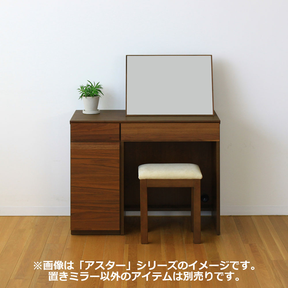 コンパクトなサイズ感でリビングや寝室など空間を選ばずにレイアウトできる「アスターシリーズ」。置きミラーを合わせる事でドレッサーとして身支度のスペースを作ることが出来ます。