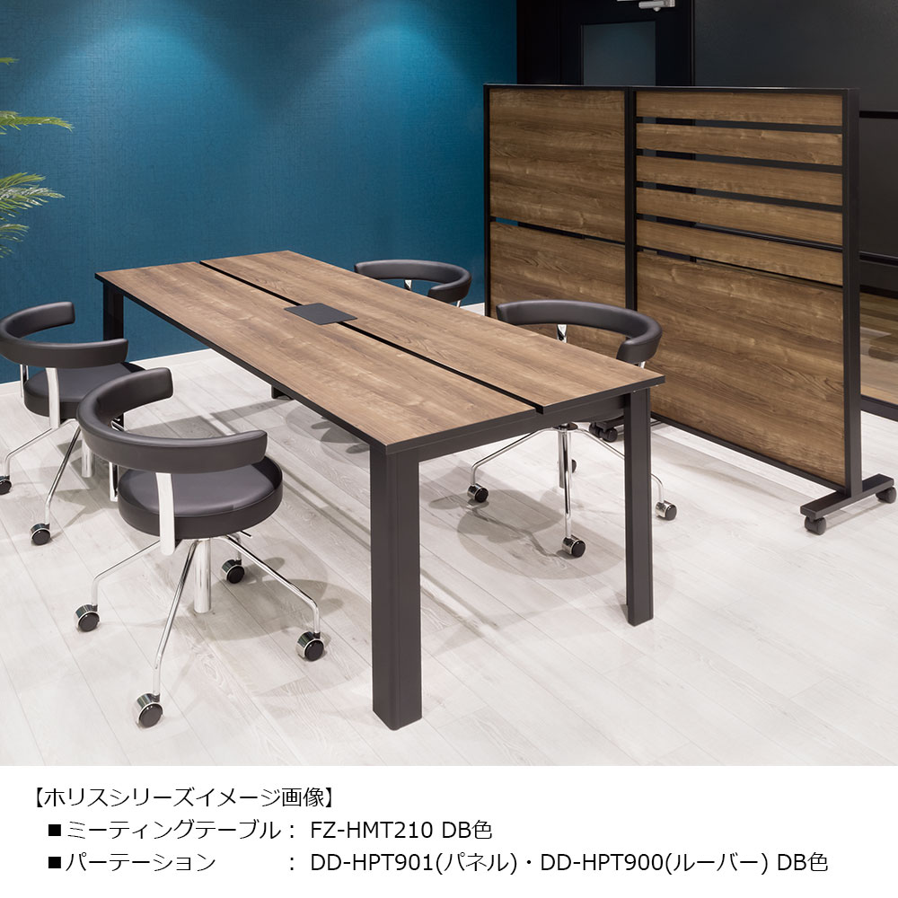 ※画像はホリスシリーズイメージです。ミーティングテーブルFZ-HMT210 +パーテーションDD-HPT901パネル+DD-HPT900ルーバー(本ページ掲載品) DB色使用。