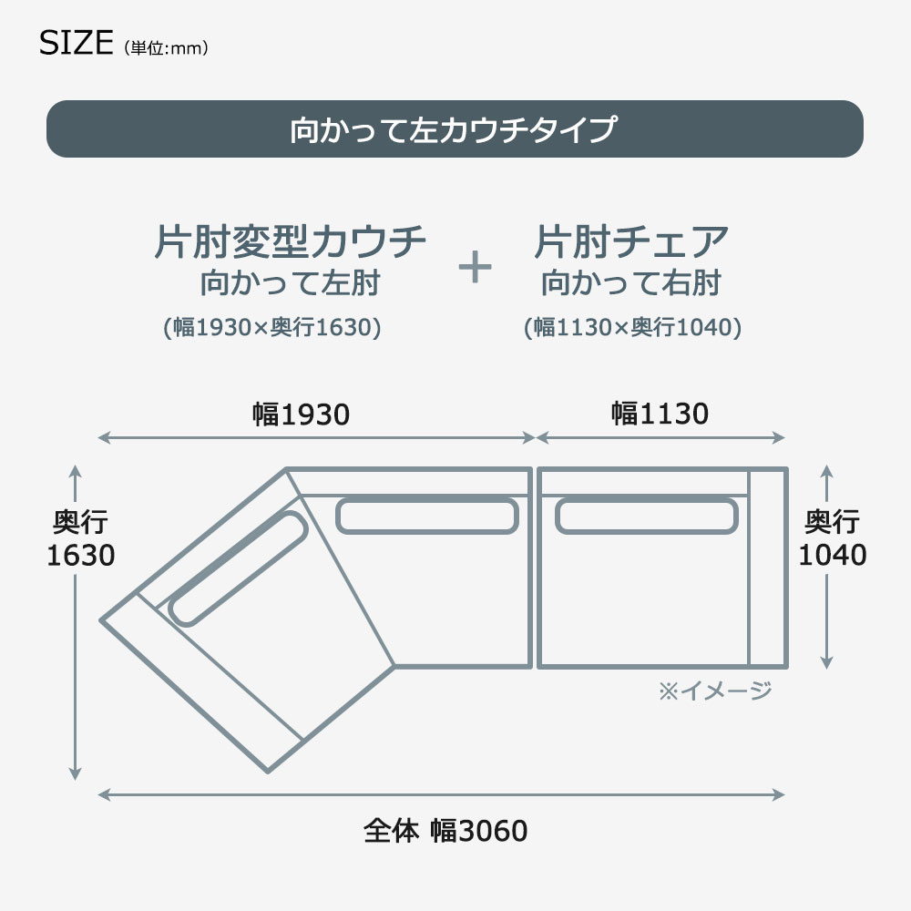 | ・片肘変型カウチ 向かって左肘 | 幅1930x奥行1630x高さ850 |