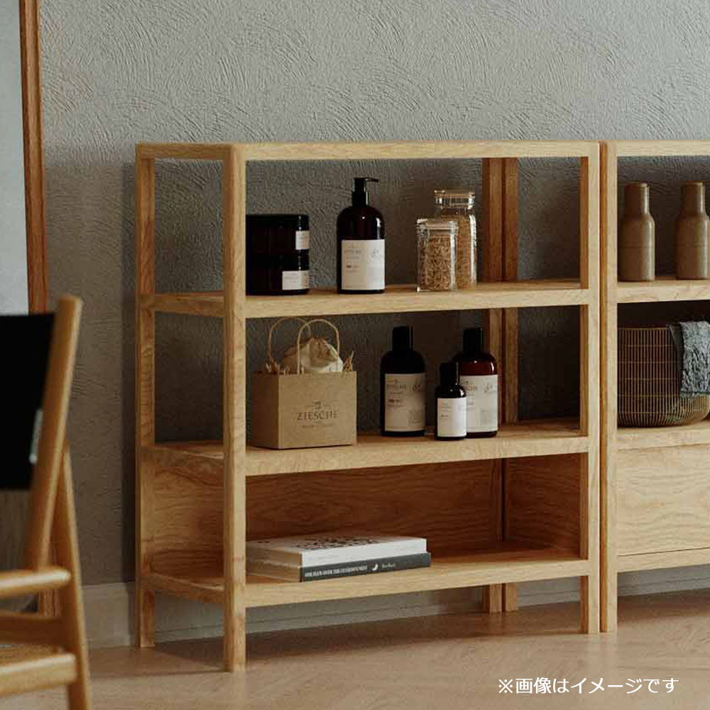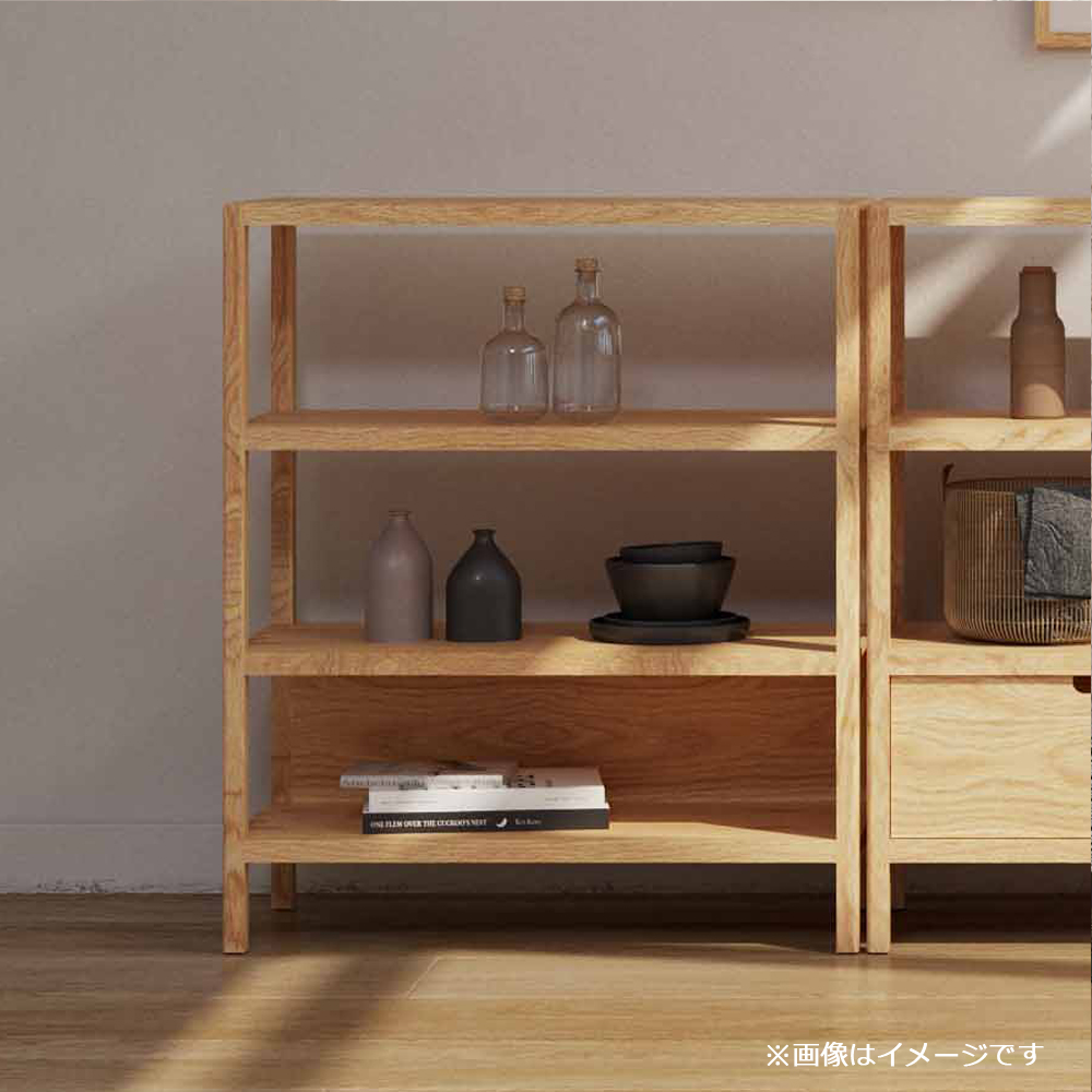 シンプルなデザインで天然木の美しい木目と優しい風合いが魅力的なシェルフ。お気に入りの雑貨や本を飾ったり、バスケットや収納ボックスを取り入れて、散らかりがちな小物や書類を整理しても。あなたのライフスタイルに合わせて、自由自在にアレンジできます。