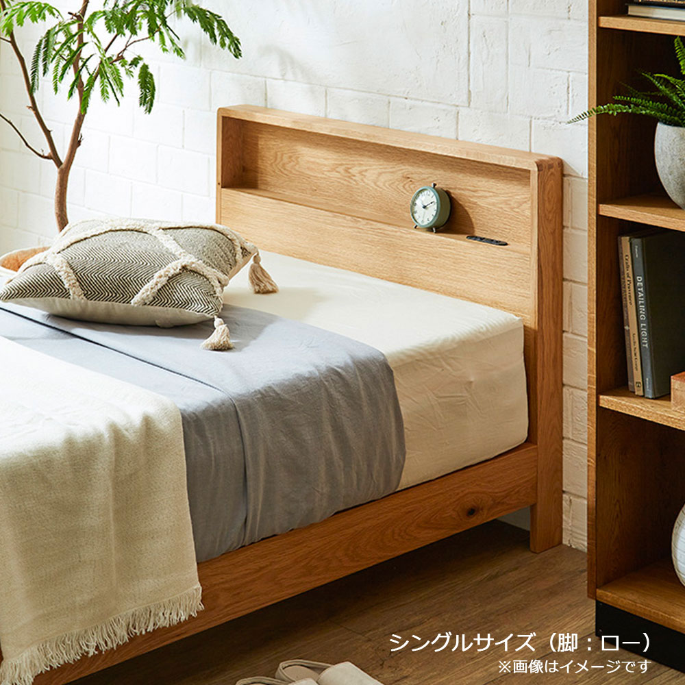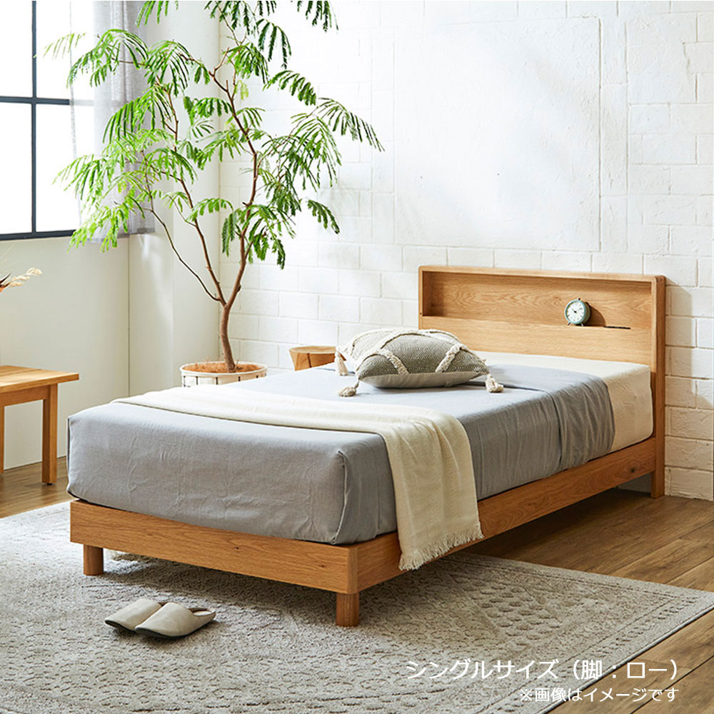 ベッドフレーム「モデスト」宮付き すのこ床板 脚高調整可 オーク材 全3サイズ