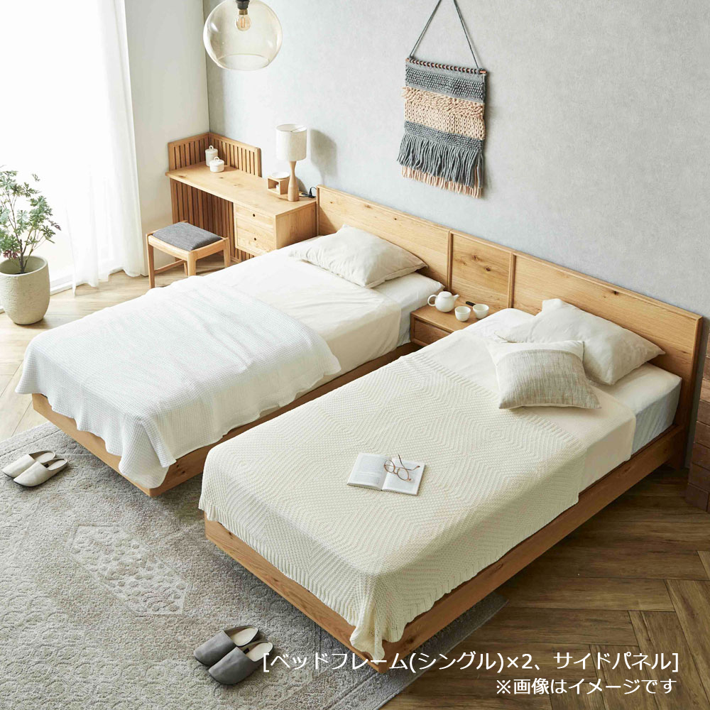 ※マットレス、寝具等その他商品は別売です。画像はシングルサイズ2台とサイドパネル2台(別売)の組合せイメージです。