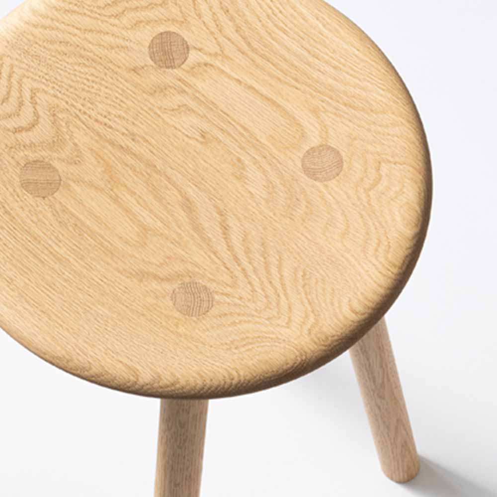 すべてにオークの無垢材を使用したスツール。ダイニングや洗面台など、配置するお部屋や用途によってさまざまな表情を魅せます。シンプルなデザインでミ二マルな空間や、お部屋に木の温もりをプラスしたいときにも活躍します。