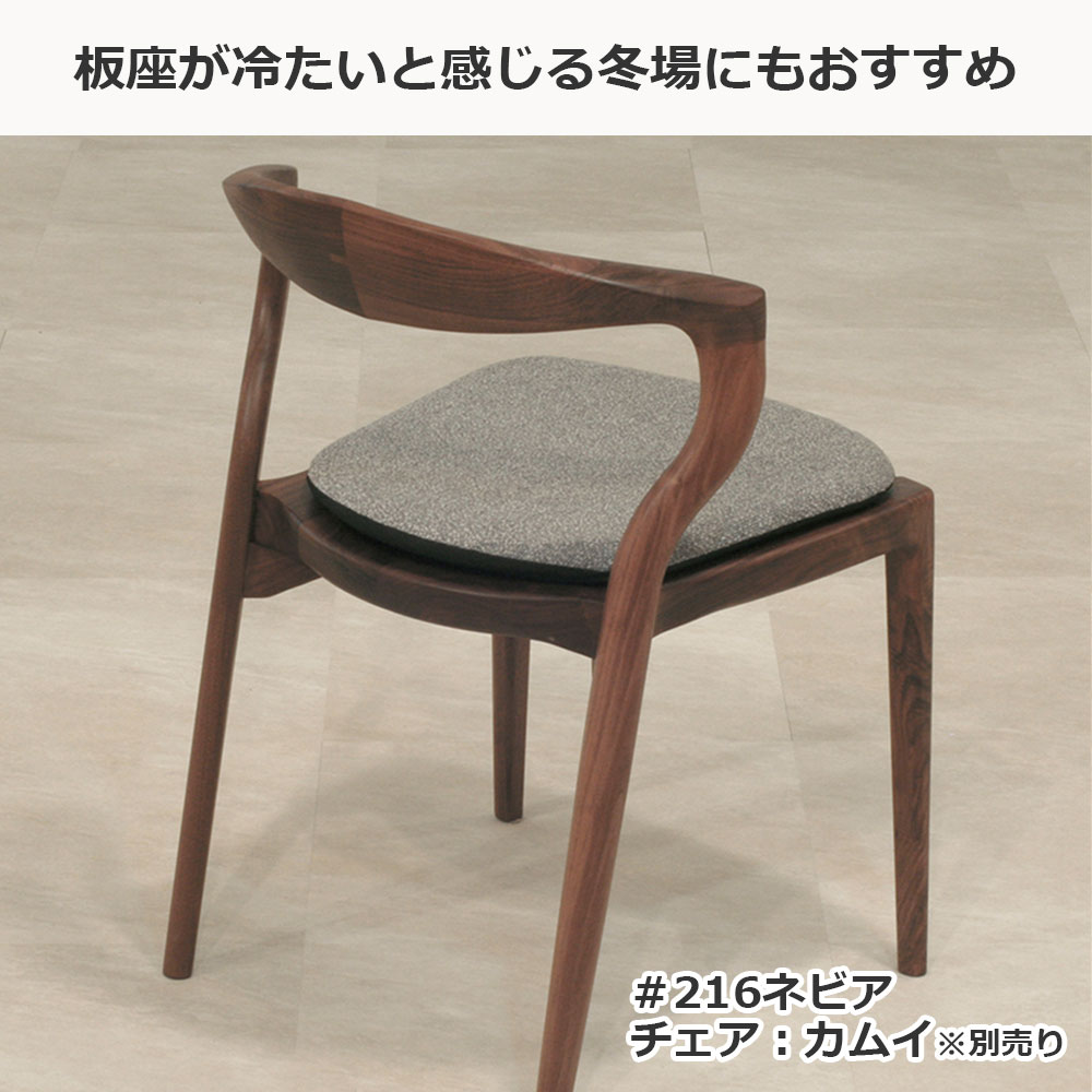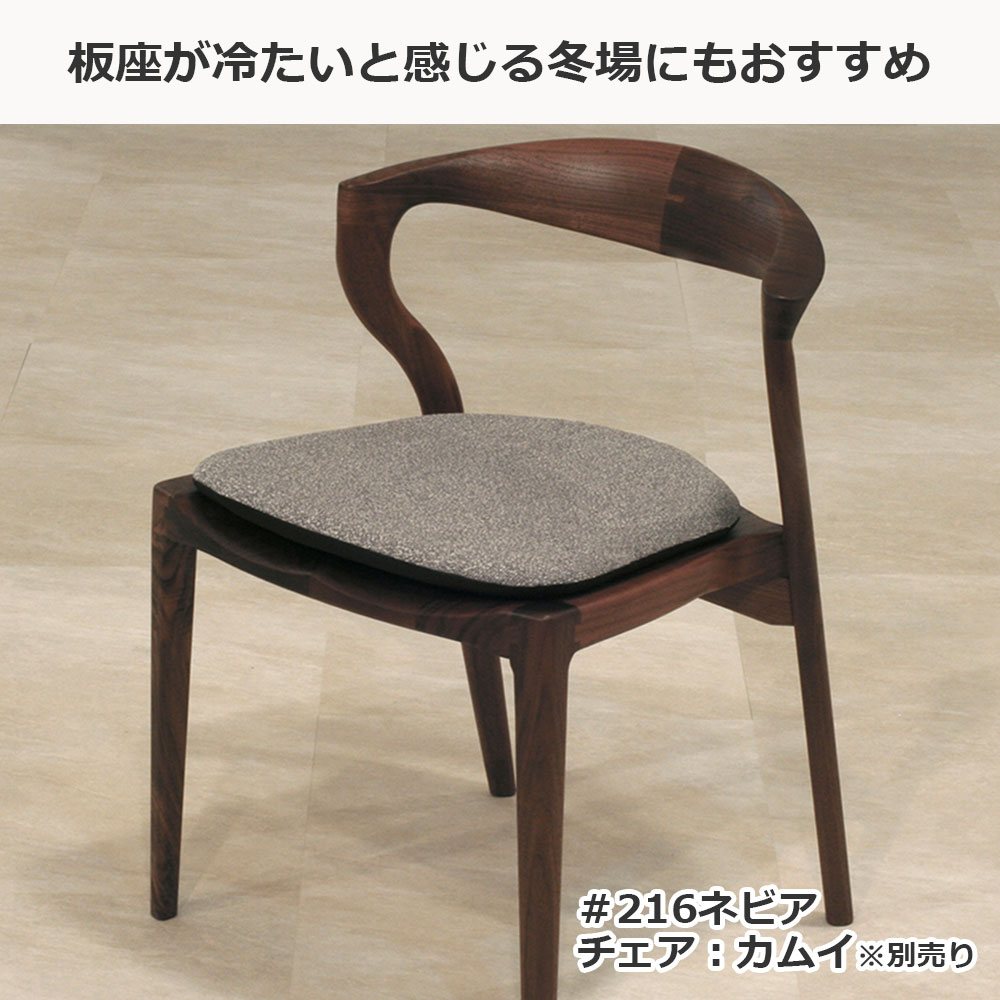 起立木工の板座チェアに合わせて使える座面用クッションです。硬めのウレタンを使用しており、底付感のない座り心地です。板座が冷たいと感じる冬場にもおすすめです。