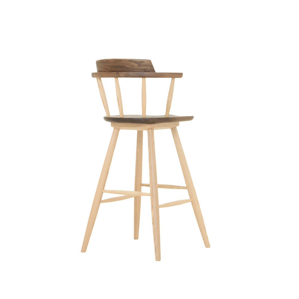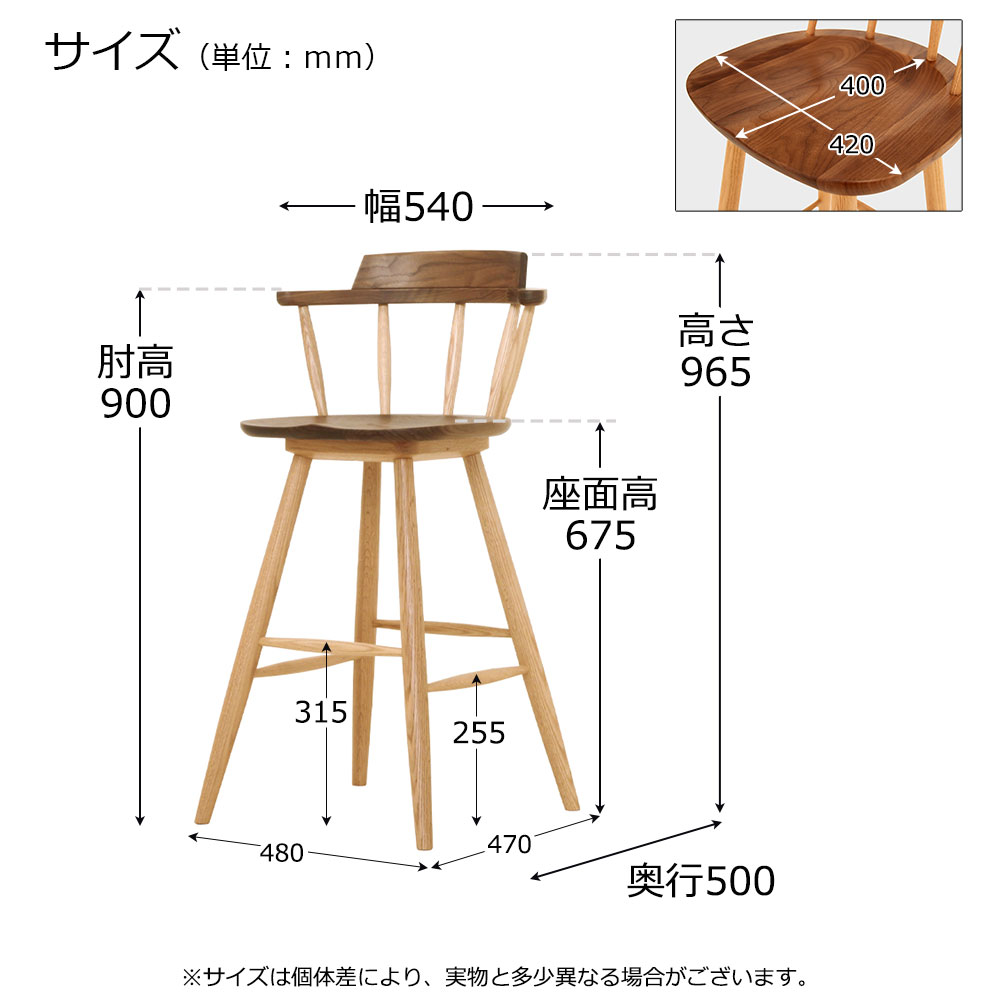 回転式カウンターチェア「DC371-0CW WN/RO-CL」板座 ウォールナット材/レッドオーク材 座面高67.5cm【受注生産品】