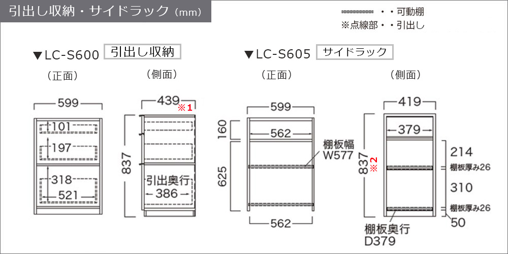 (引出し収納)LC-S600/(サイドラック)LC-S605/(天板)LC-120T
