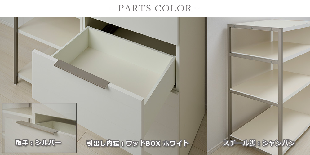| 引出し内装 | ホワイト | ホワイト | ホワイト | ダークグレー |