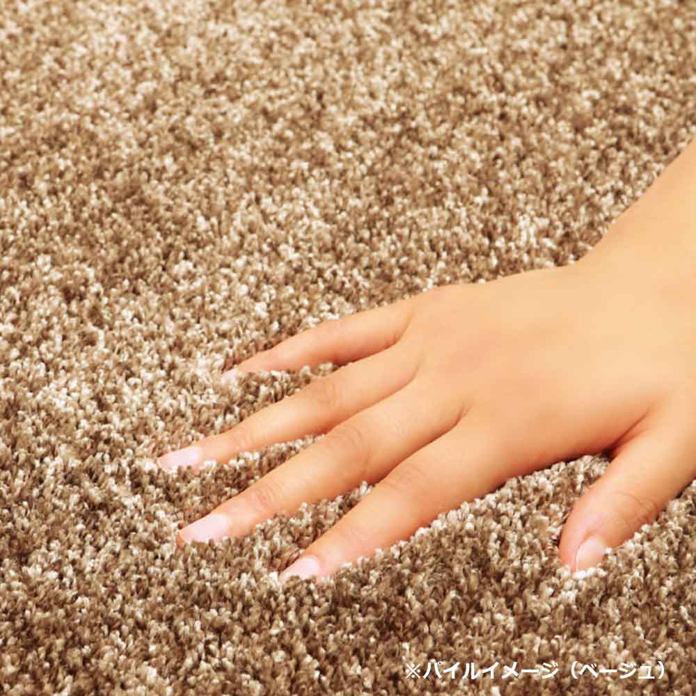 ボリュームのある長めのカットパイルは、熱可塑性によりセットされていて弾力性があり、ふわふわした贅沢な肌触りです。遊び毛が出にくく、床暖房やホットカーペットにも対応。夏はさらさらと心地よく、冬はふっくらと底冷えを防ぎ、一年を通してご使用いただけます。