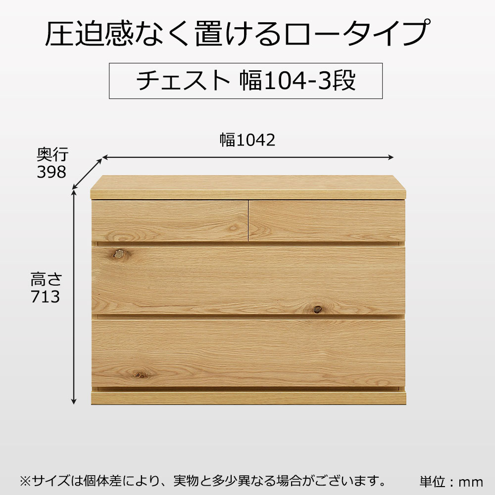 チェスト「アビィ2」幅104.2cm 引出し3段(104-3)ホワイトオーク材ホワイトオーク(WO)色