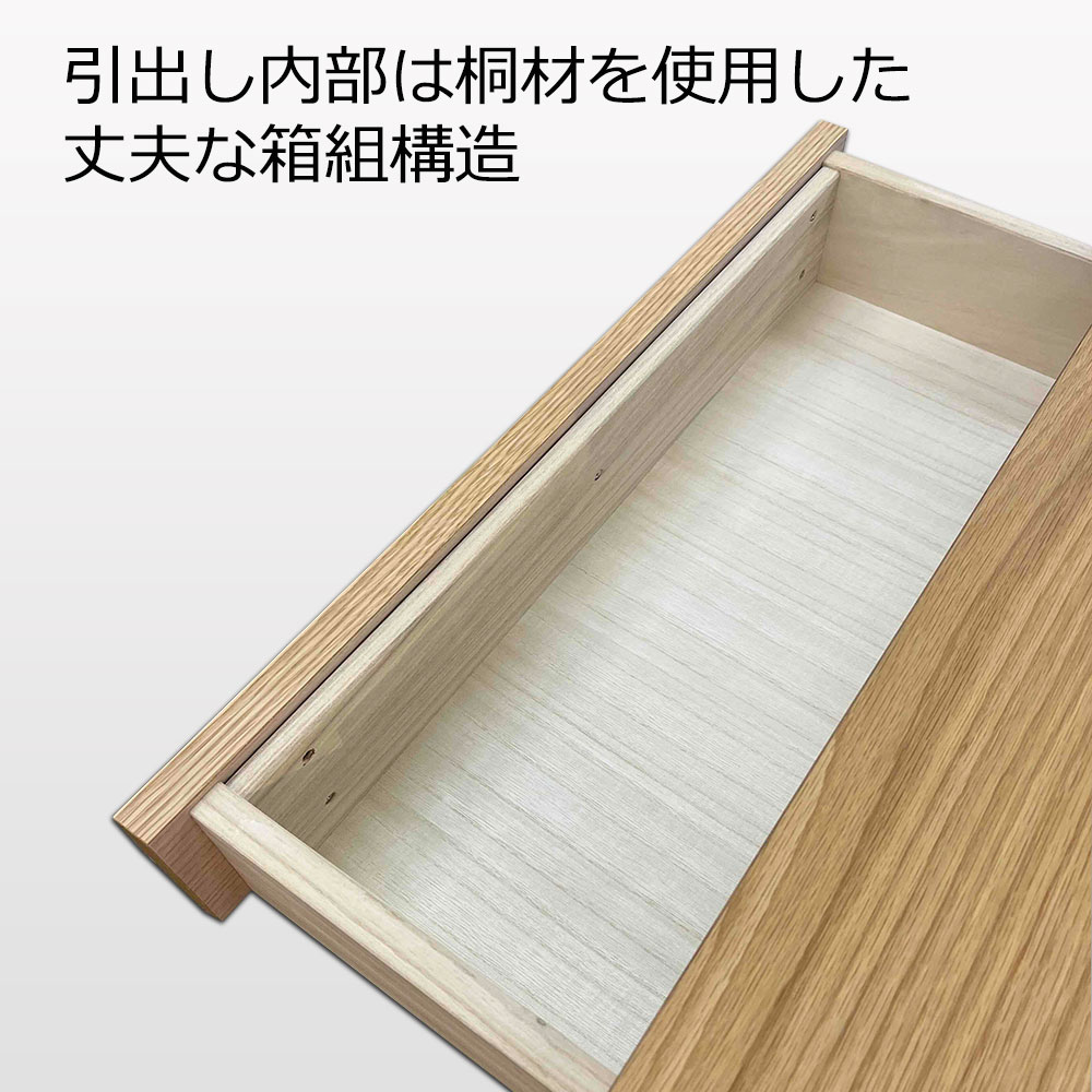 引出しの内箱は桐材を使用しており、丈夫な箱組構造で収納物を湿気から守ります。