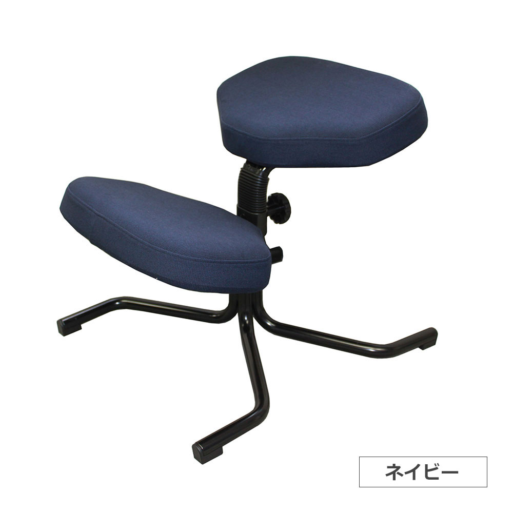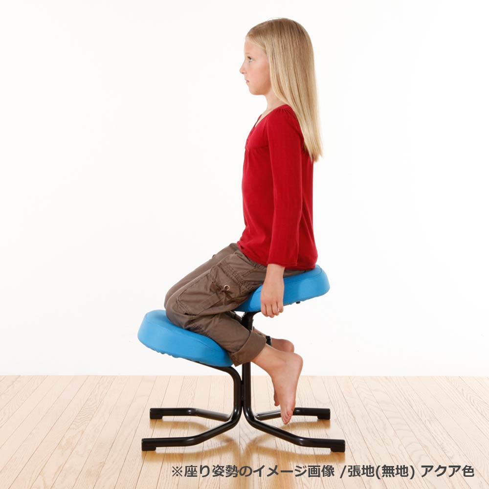 前方に傾斜した座面と膝部に身体を合わせると、太ももが床と水平でなく斜めになり、上体と太ももの角度が120度に開くことで、バランスをとるために自然と背筋が伸びて、無理なく良い姿勢を保つことができます。また、バランスチェアに座った際の腰椎カーブは、直立姿勢に近い自然なS字型が保て、筋肉の緊張を解き腰や背中の負担を軽減します。高さは6段階、座部と膝部は各3段階で前後に調節が可能で、身体に合わせて子どもから大人まで長くお使いいただけます。※画像は座り姿勢のイメージです。