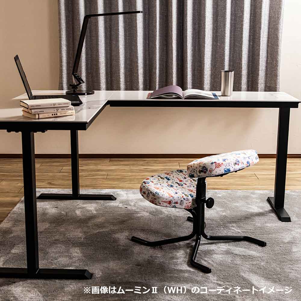 前方に傾斜した座面と膝部に身体を合わせると、太ももが床と水平でなく斜めになり、上体と太ももの角度が120度に開くことで、バランスをとるために自然と背筋が伸びて、無理なく良い姿勢を保つことができます。また、バランスチェアに座った際の腰椎カーブは、直立姿勢に近い自然なS字型が保て、筋肉の緊張を解き腰や背中の負担を軽減します。高さは6段階、座部と膝部は各3段階で前後に調節が可能で、身体に合わせて子どもから大人まで長くお使いいただけます。※画像は座り姿勢のイメージ(別ページ掲載の張地(無地) アクア色)です。