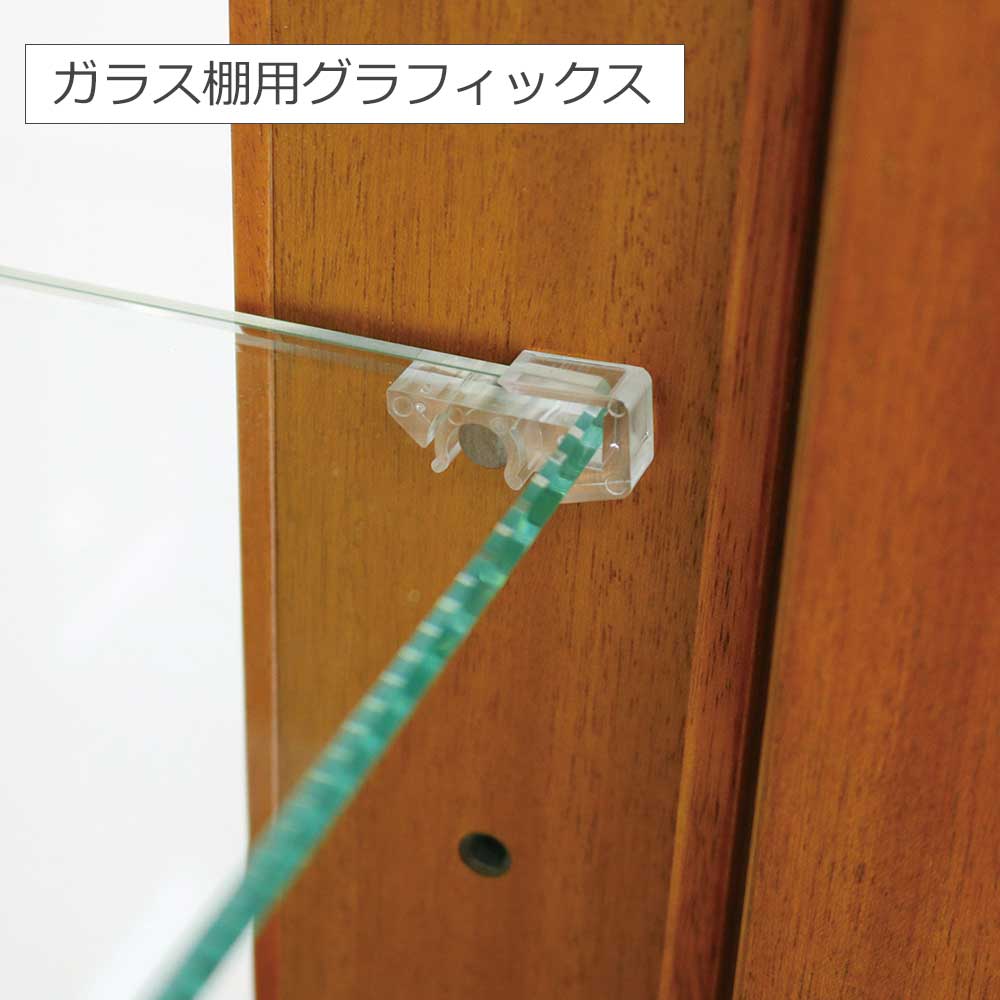 側面ガラス張りに背板はミラー貼りで、扉内の天板下にはLED照明が付いており、お気に入りの装飾品をより一層引き立てます。