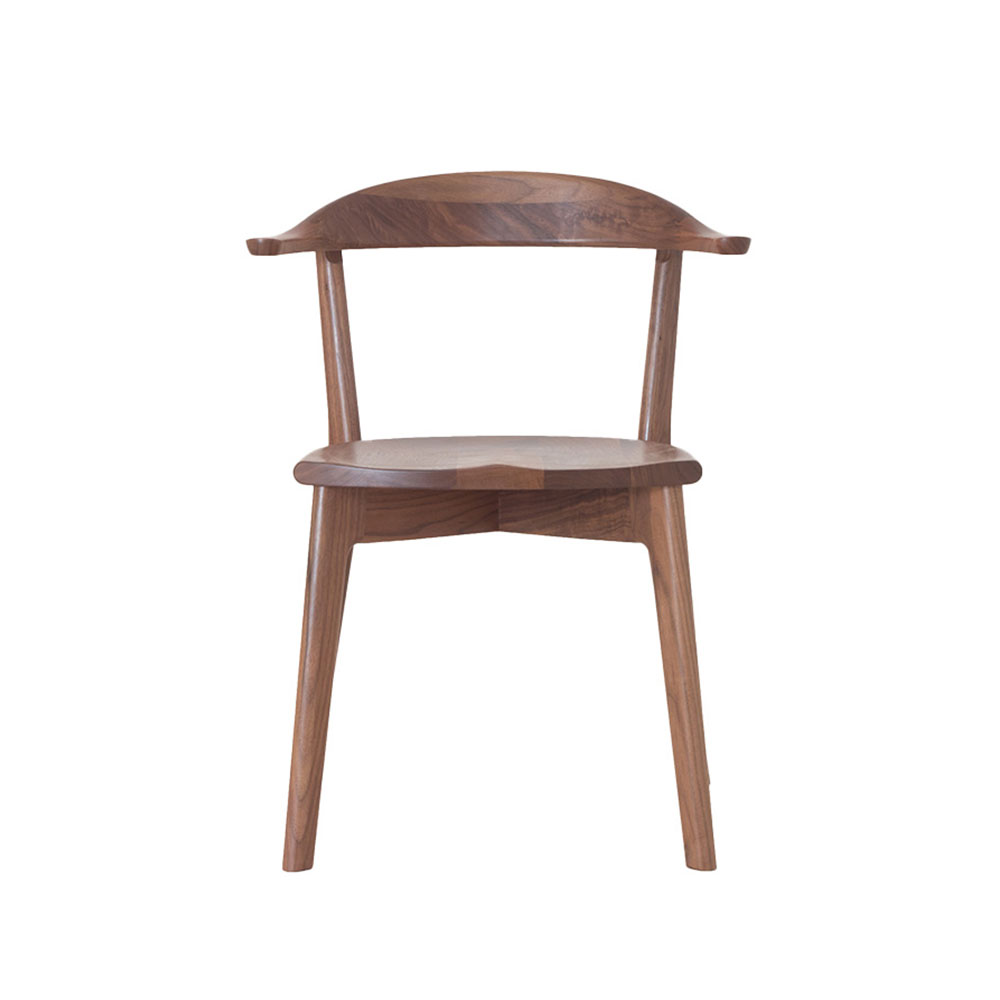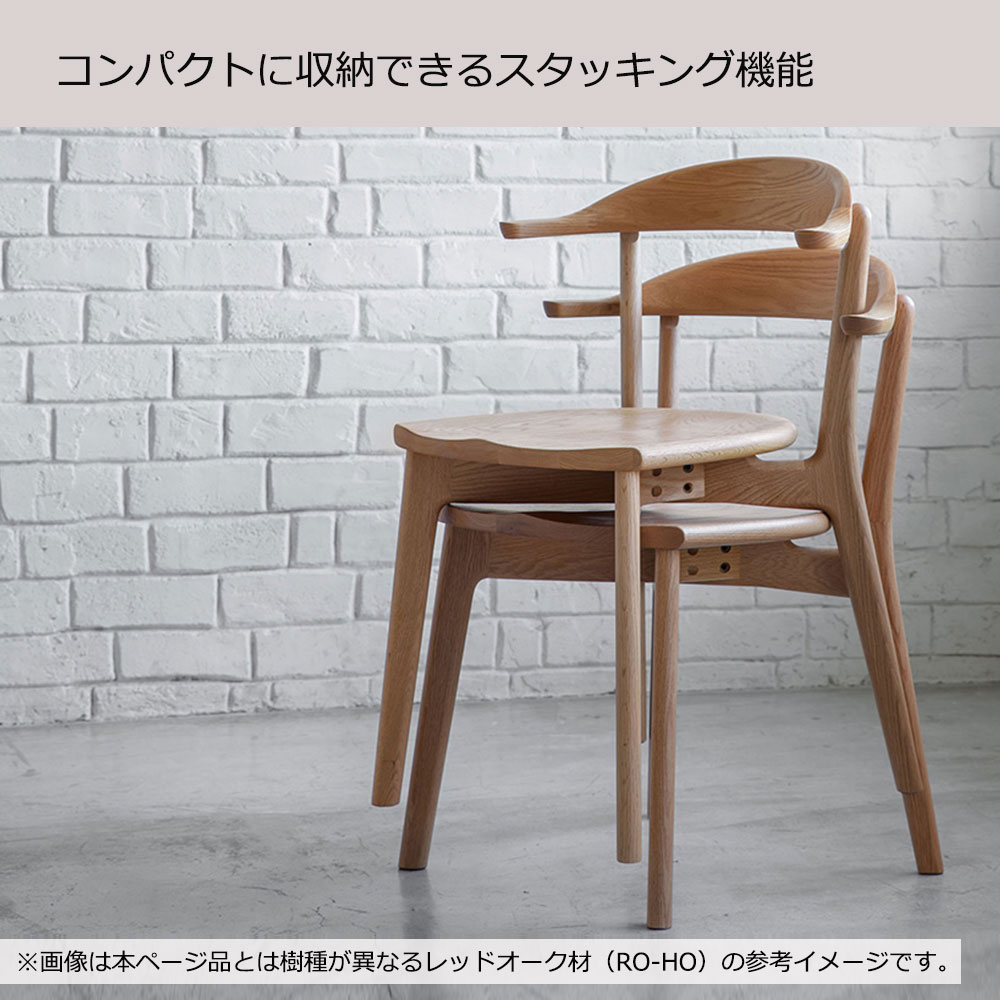 板座チェアながら軽量で、ウォールナット材の艶のある美しい色合いと愛らしく軽やかなデザインが特徴のダイニングチェア。無垢の素材感を活かして身体にフィットする座り心地の良さと、スタッキングやハンギングが可能な機能性を持ち合わせています。※天然木を使用しているため、1点ごとに木目や色味は異なります。
