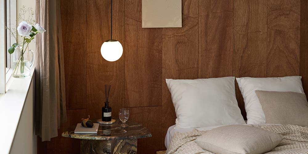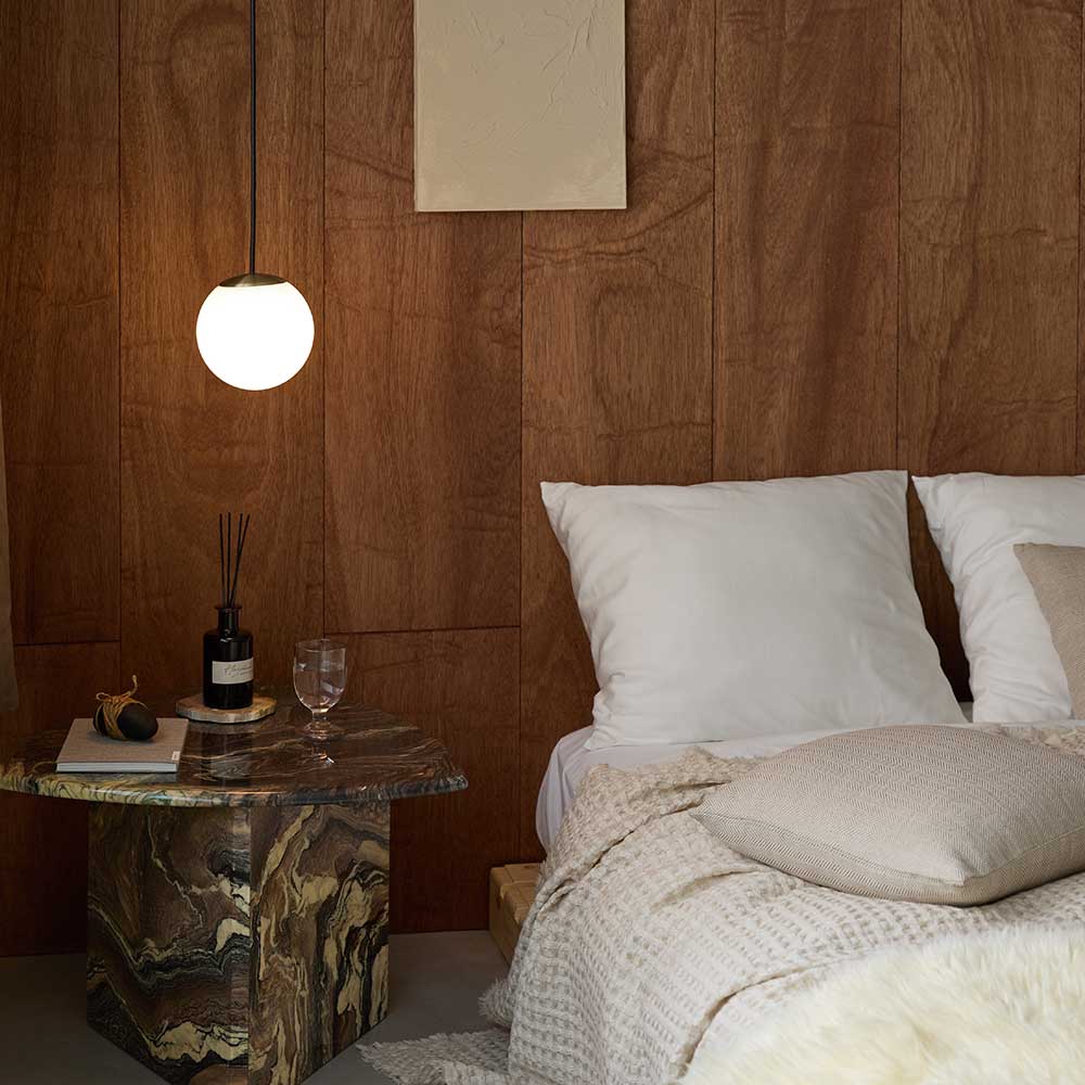 繊細な球体型ガラスセードに、上品な印象の真鍮ブロンズメッキ仕上げの銅製ソケットパーツを組合わせたペンダントライト。吊るす場所を選ばないミニマルなデザインが魅力です。フロストガラスのセードにより、柔らかな灯りが空間に広がります。