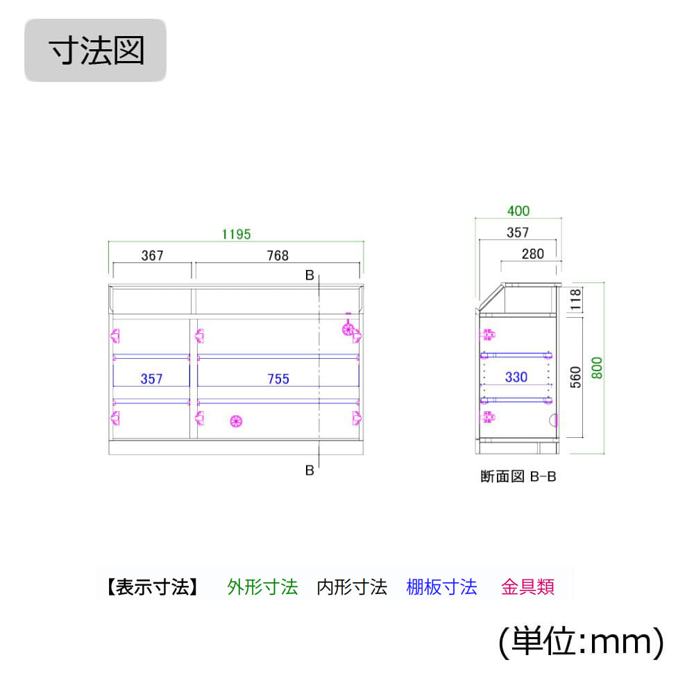 幅1195x奥行400x高さ800