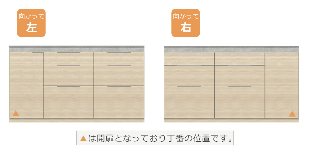 お部屋の間取りに合わせて扉収納の位置を左右で選べます。
