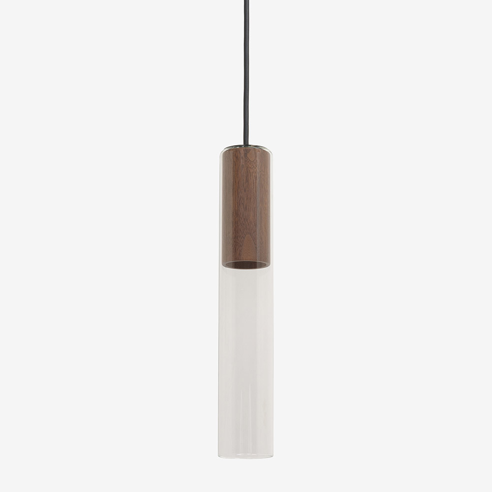 ウォールナット無垢材を円柱状に削り出して仕上げた、ミニマルで美しいデザインのペンダントライトです。異素材のガラスと組合わせることで、シンプルながらも個性的な印象を与えます。無垢材ならではの温かみを感じられるだけでなく、長くお使いいただくことで天然木の経年変化もお楽しみいただけます。