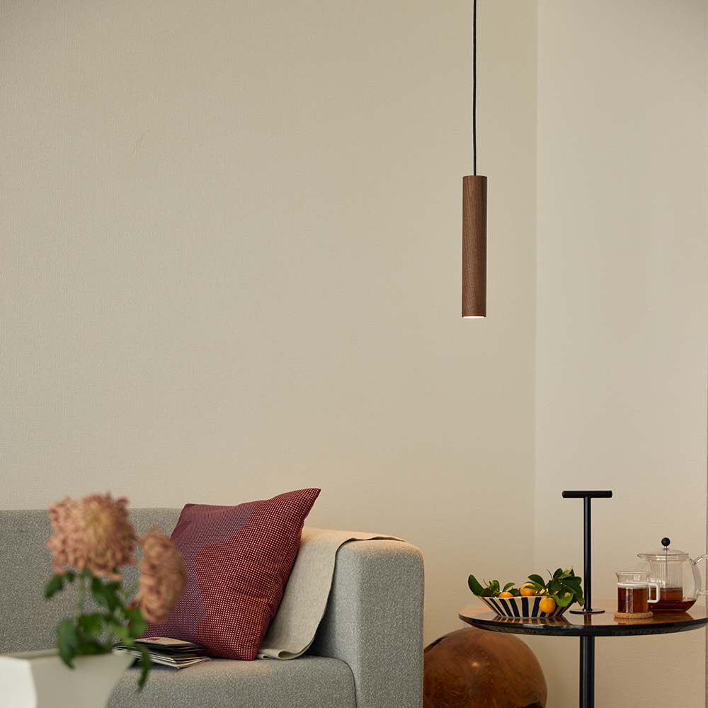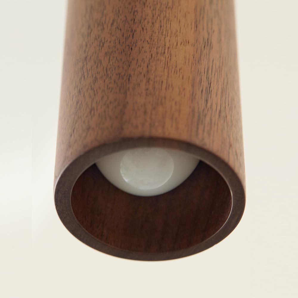 ウォールナット無垢材を円柱状に削り出して仕上げた、ミニマルで美しいデザインのペンダントライトです。無垢材ならではの温かみを感じられるだけでなく、長くお使いいただくことで天然木の経年変化もお楽しみいただけます。