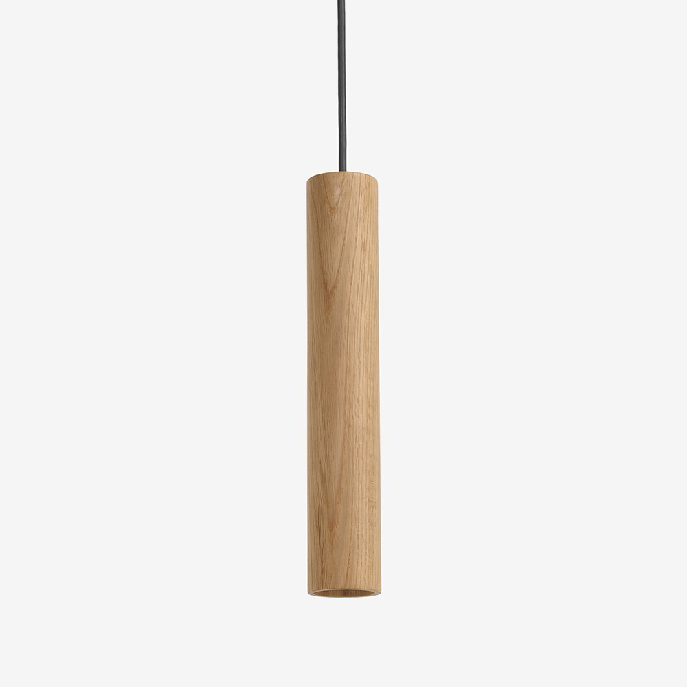 ナラ無垢材を円柱状に削り出して仕上げた、ミニマルで美しいデザインのペンダントライトです。無垢材ならではの温かみを感じられるだけでなく、長くお使いいただくことで天然木の経年変化もお楽しみいただけます。