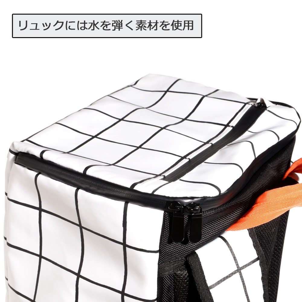 リュック本体には撥水性のある素材を使用し、ファスナー部分は隙間から水が入りにくい仕組みになっています。