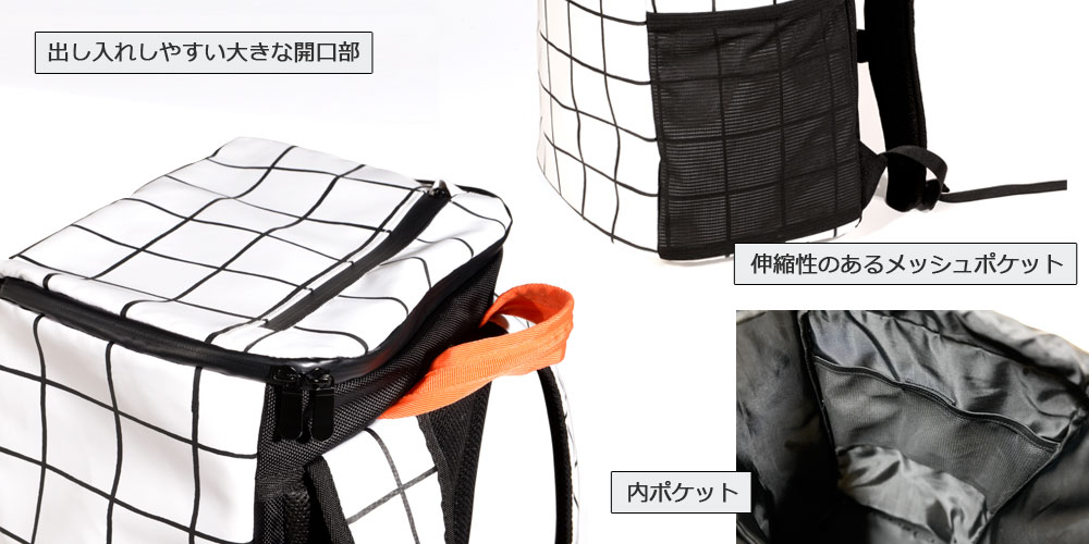 伸縮性のあるメッシュ生地を採用したサイドポケットには、ペットボトルなど、ある程度ボリュームがあるものも入れられます。