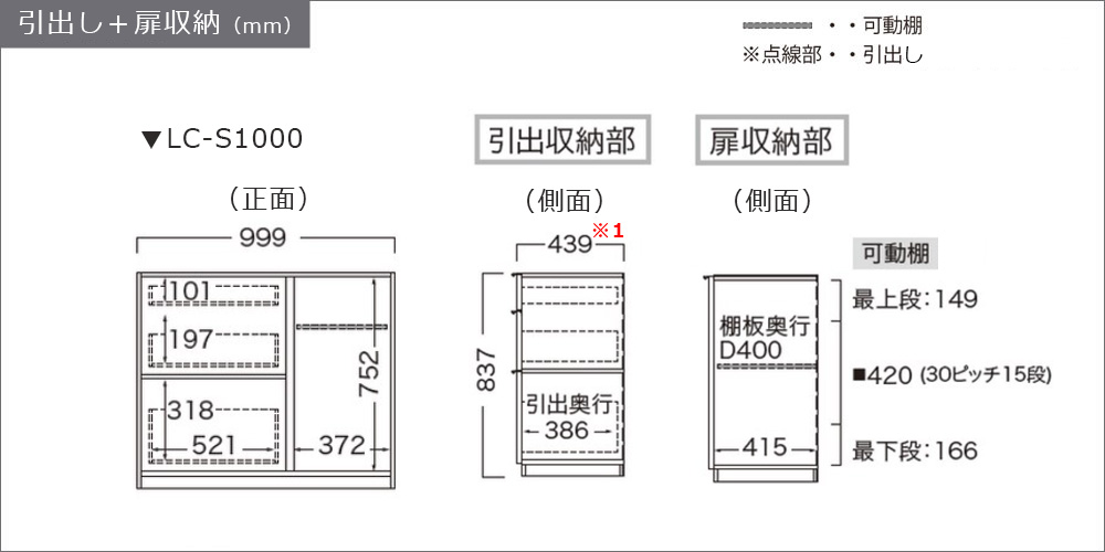 引出し+扉収納(LC-S1000)※扉:向かって右[右開き]