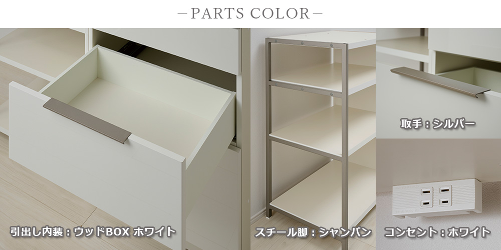 | 引出し内装 | ホワイト | ホワイト | ホワイト | ダークグレー |