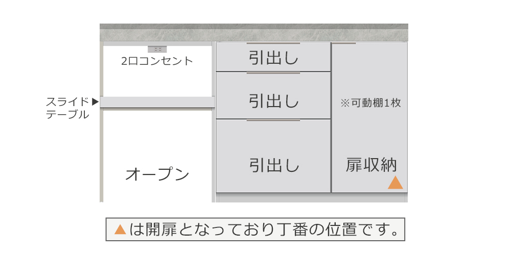 作業台スペースを最大限に活用できるカウンタースタイル【引出し+扉収納(扉:向かって右[右開き])・家電収納】幅160cmタイプ