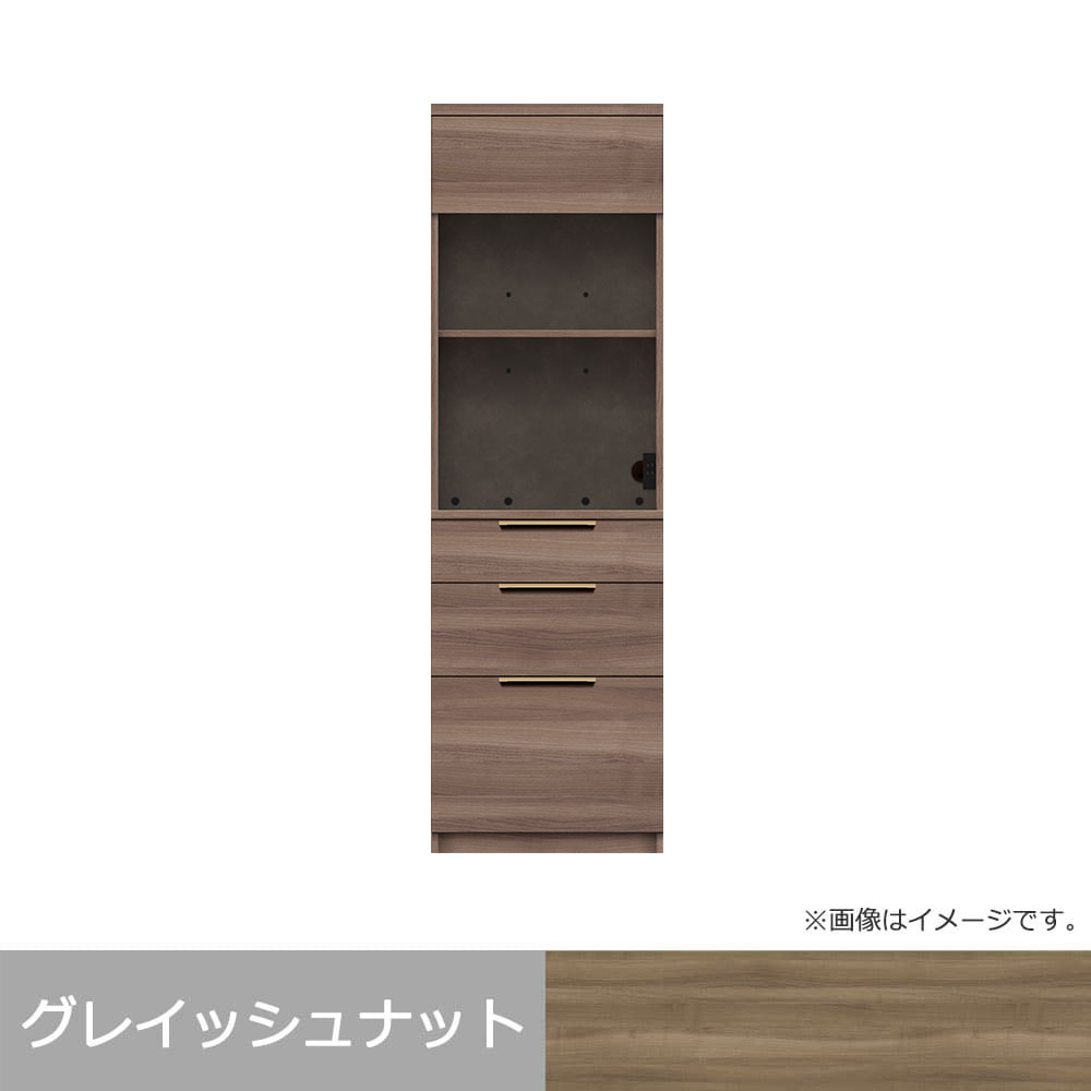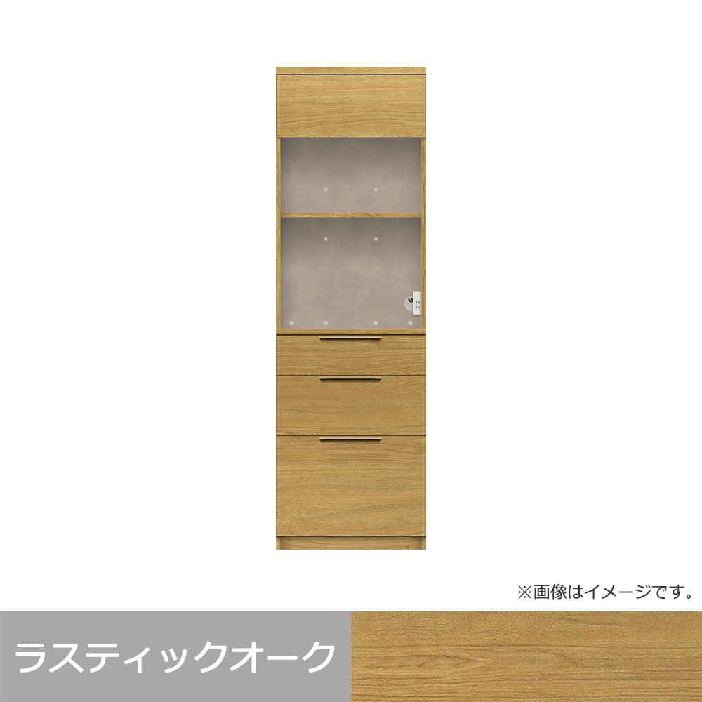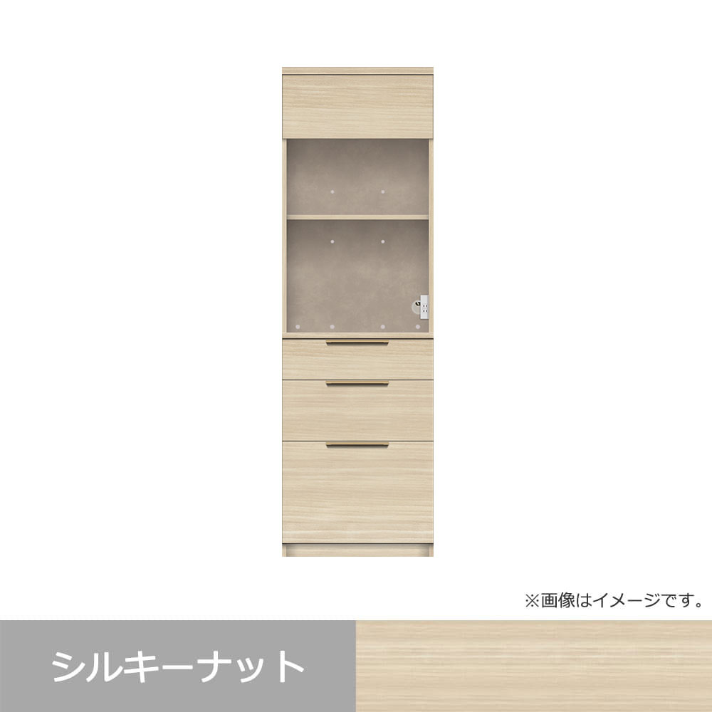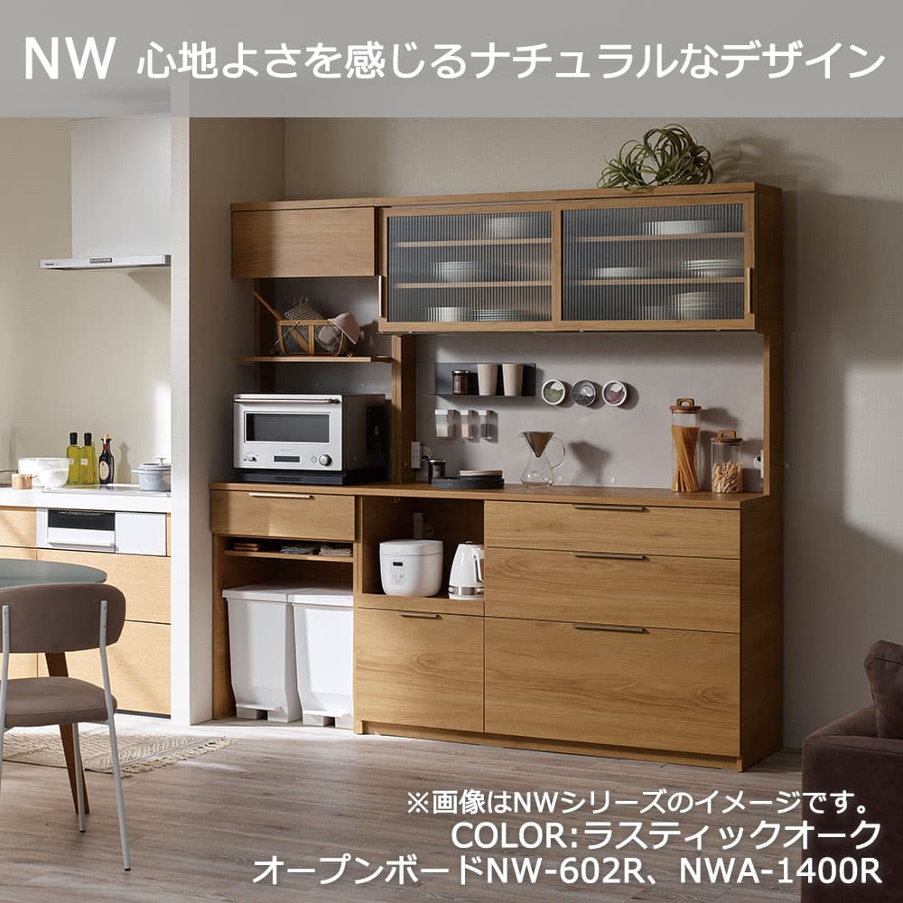 ナチュラルなインテリアに馴染む木目柄で統一されたデザインのNWシリーズ。上台は家電をたくさん設置したい方におすすめのオープンタイプ、下台は3段の引出しタイプでたっぷり収納できる幅60cmのサイドアイテムです。